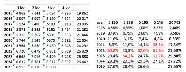 Pri mojom porovnávaní som vychádzal z rovnakých metrík, kde základ boli priemerné úmrtia za roky 2015-2019. Jedným dychom musím skonštatovať, že rozptyl povedzme +-5 % je v norme, lebo jednoducho aj keď dogmy roku 2020 tvrdili, že na chrípku zomiera ročne maximálne dvojciferné číslo, taký vakcinačný gury Mr. Szalay v roku 2025 už pripustil tisícku. Na porovnanie som použil štatistické údaje Singapúru (https://tablebuilder.singstat.gov.sg/table/TS/M810121), tieto som agregoval podľa kvartálov – v prípade Singapúru to bolo jednoduché, pretože tento ich má podľa mesiacov.